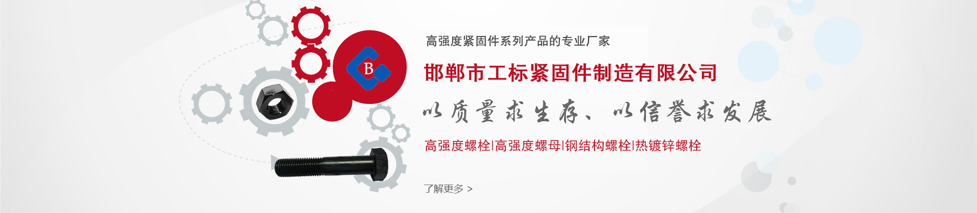 河北東少緊固件制造有限公司是一家專業生產和銷售緊固件系列產品的生產型企業,產品銷往各地并出口東南亞、歐洲、北美、非洲等國家。 東少公司現在呈集團化發展,旗下公司有:河北東少緊固件制造有限公司、永年縣東南緊固件制造有限公司和邯鄲市東浩貿易有限公司(出口)。主要產品有:高鐵系列螺栓、光伏太陽能系列螺栓及配件、鋼結構螺栓、扭剪螺栓、基建專用配套緊固件、膨脹錨固系列產品、各種熱鍍鋅標準件,并出口各種高端緊固件。...